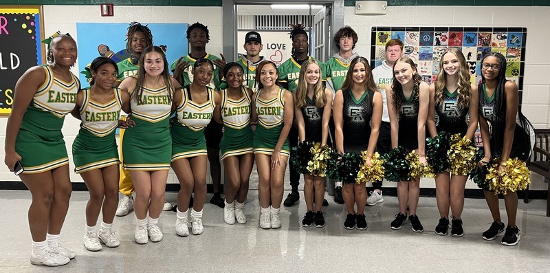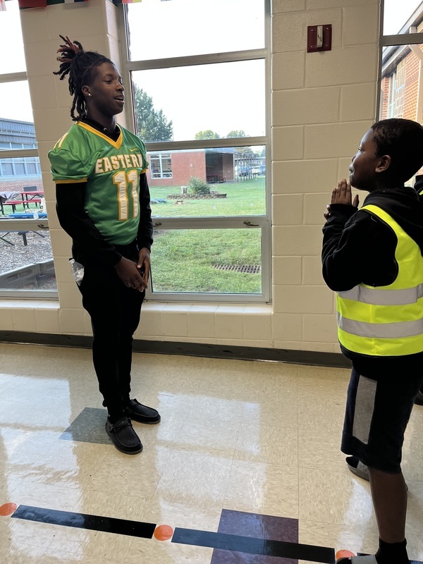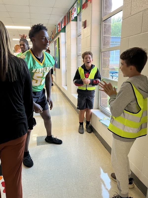 This morning, some of our Eagles paid a surprise visit to EM Yoder! EAHS football players, cheerleaders, and dance team members helped the EM Yoder Safety Patrol with morning duties, and then spread some Eagle spirit through the Yoder halls. There were a ton of high fives and hugs and even a little trash talk from a kid wearing a Southeast Alamance shirt! We’ll forgive him. Everyone had a blast! Go Eagles!