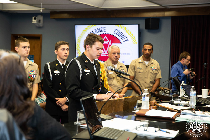 The NJROTC Cadets read a proclamation that was later adopted by the Commisioners. Alamance County plans to illuminate county buildings green November 7th through the 13th as part of Operation Green Light.